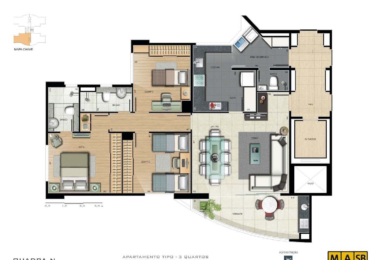 Número de andares: Torres 1 e 3 com 29 pavimentos | Torres 2 e 4: 28 pavimentos