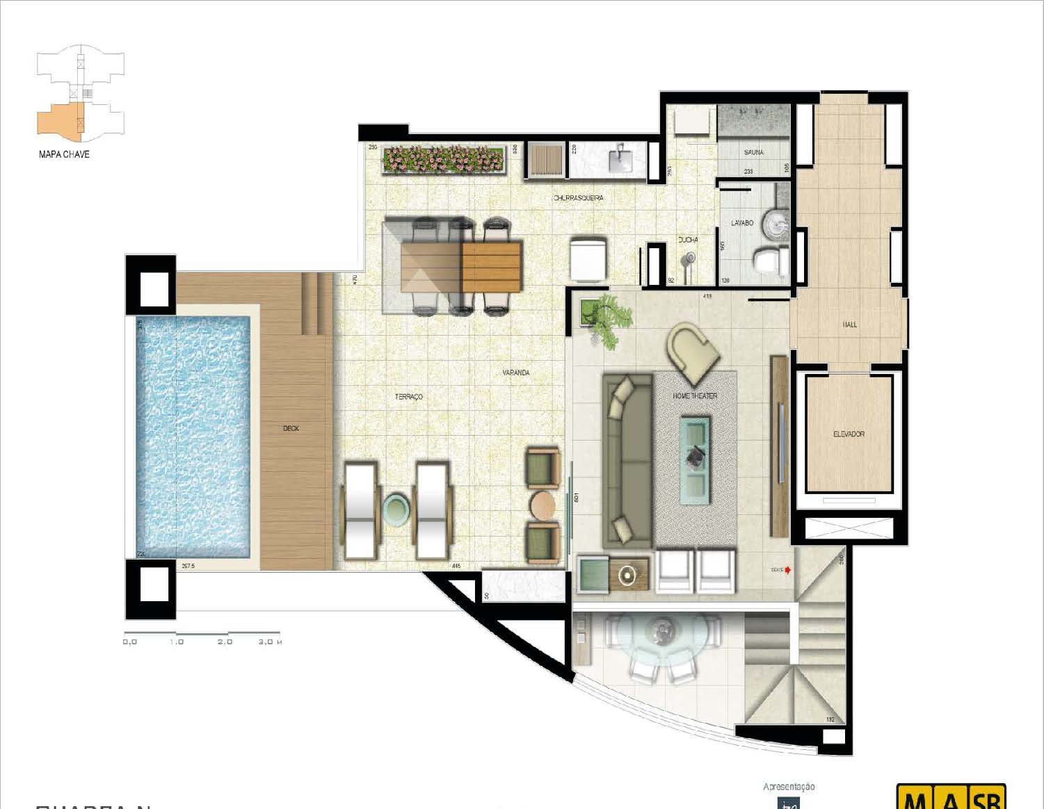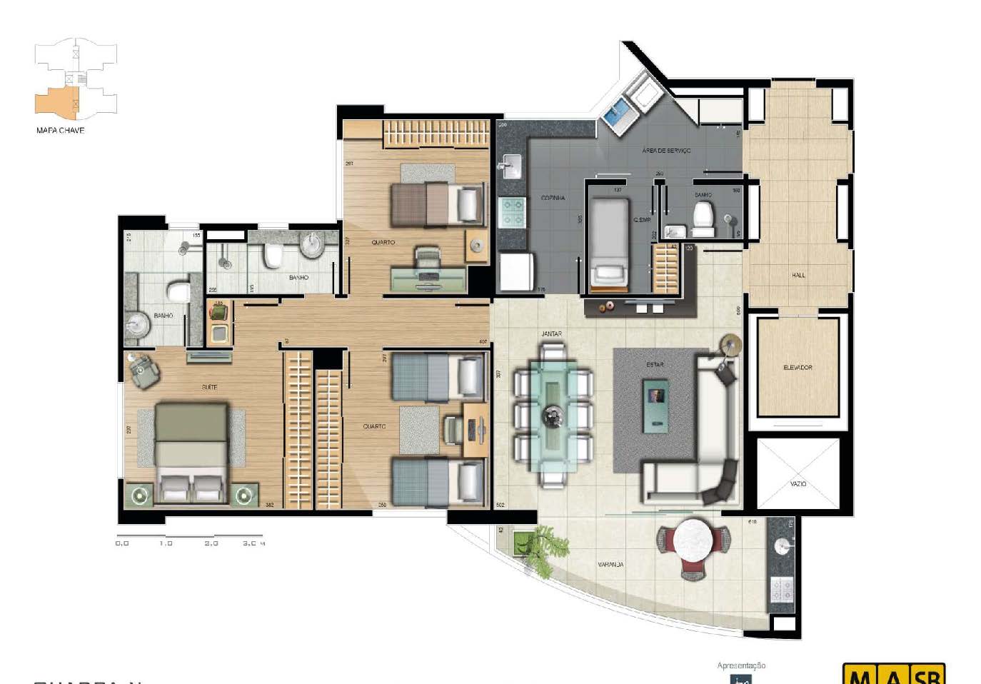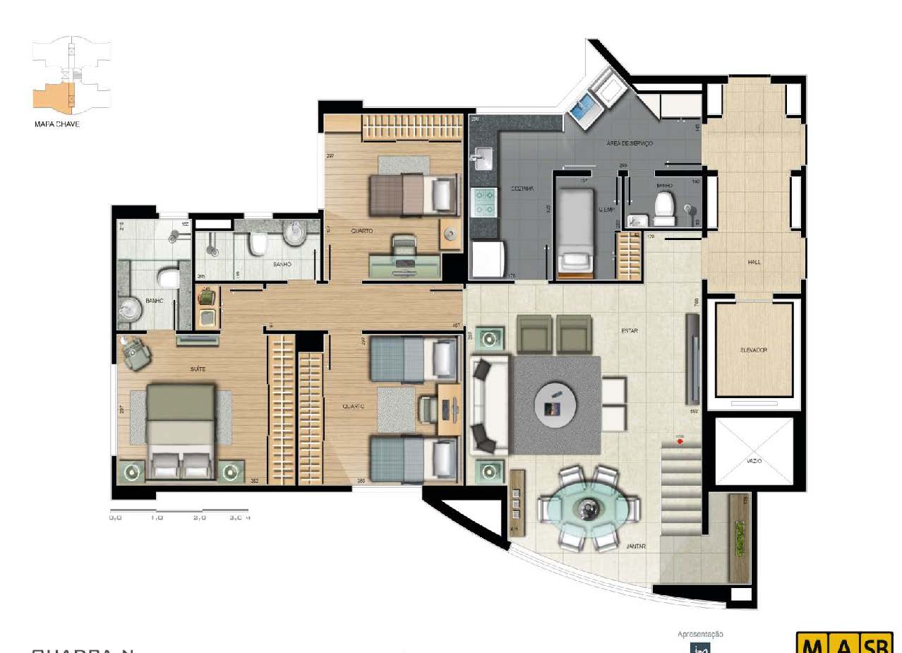 Áreas dos apartamentos: 92m² e 104m²